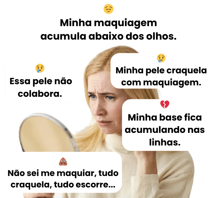 A verdade é que você vai tentar fazer sua maquiagem, e no fim, só fica com o rosto ainda mais cheio de linhas de expressões.